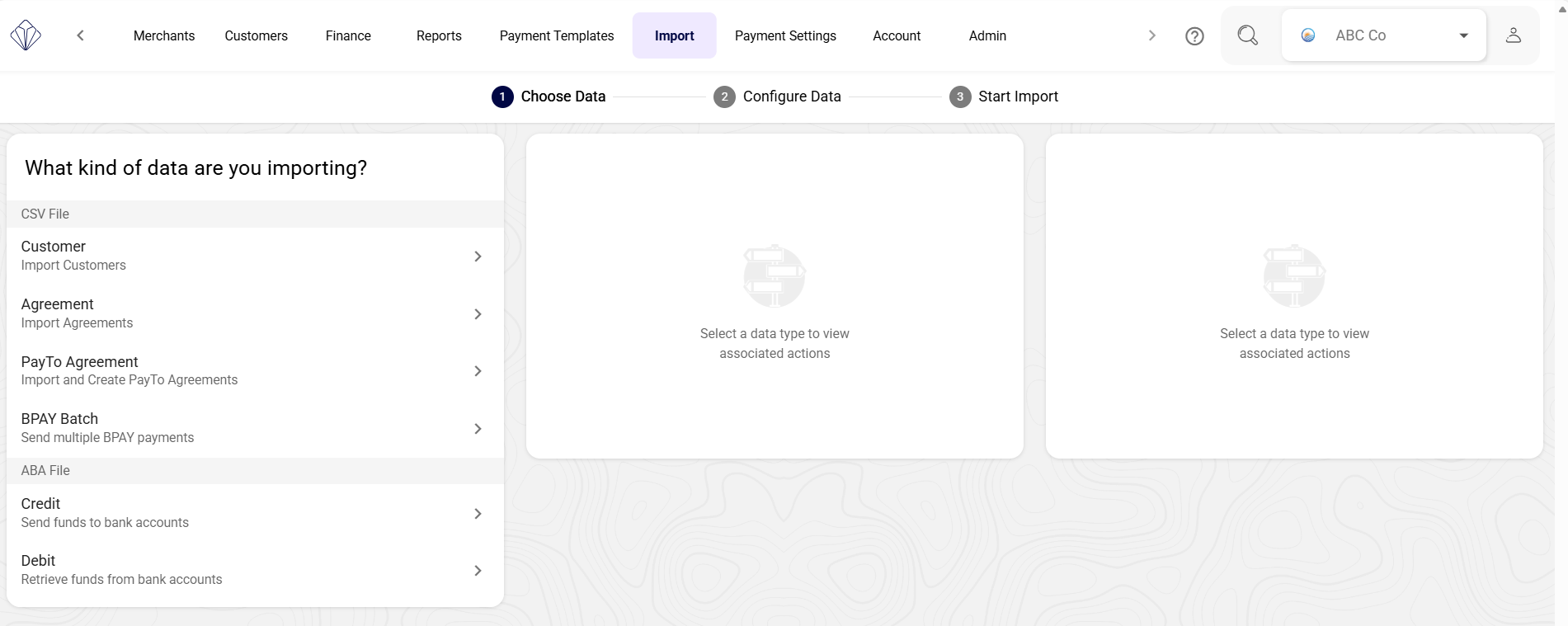 You can also create a New Import by clicking on the "New Import" option, which will bring up the following information for you to chose and create: